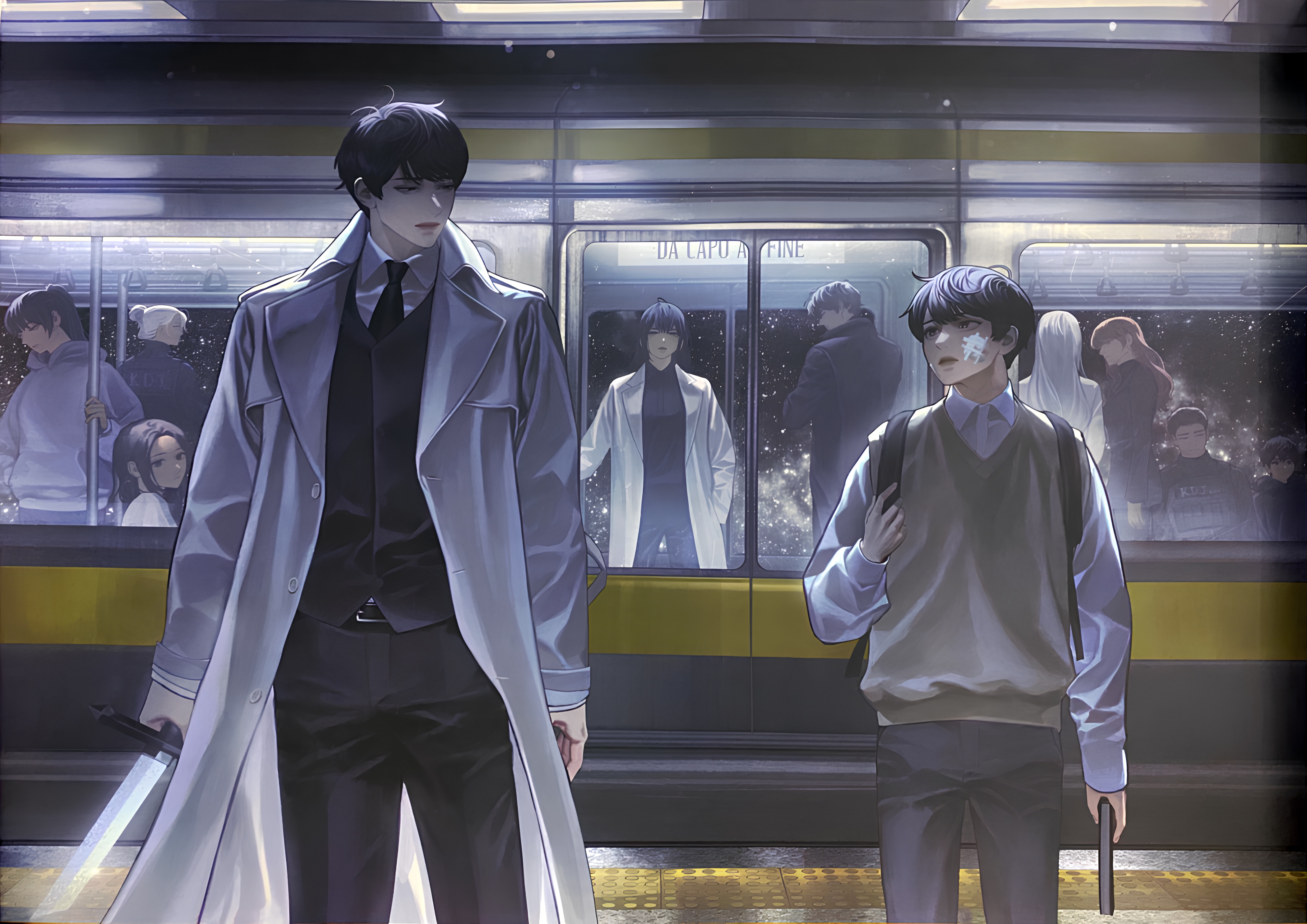 Instead, there was a Daehwa Station-bound train that would ferry passengers to their unknown destination in this normal world. And then, the crowd of people brushing past us as if they couldn't see us at all.